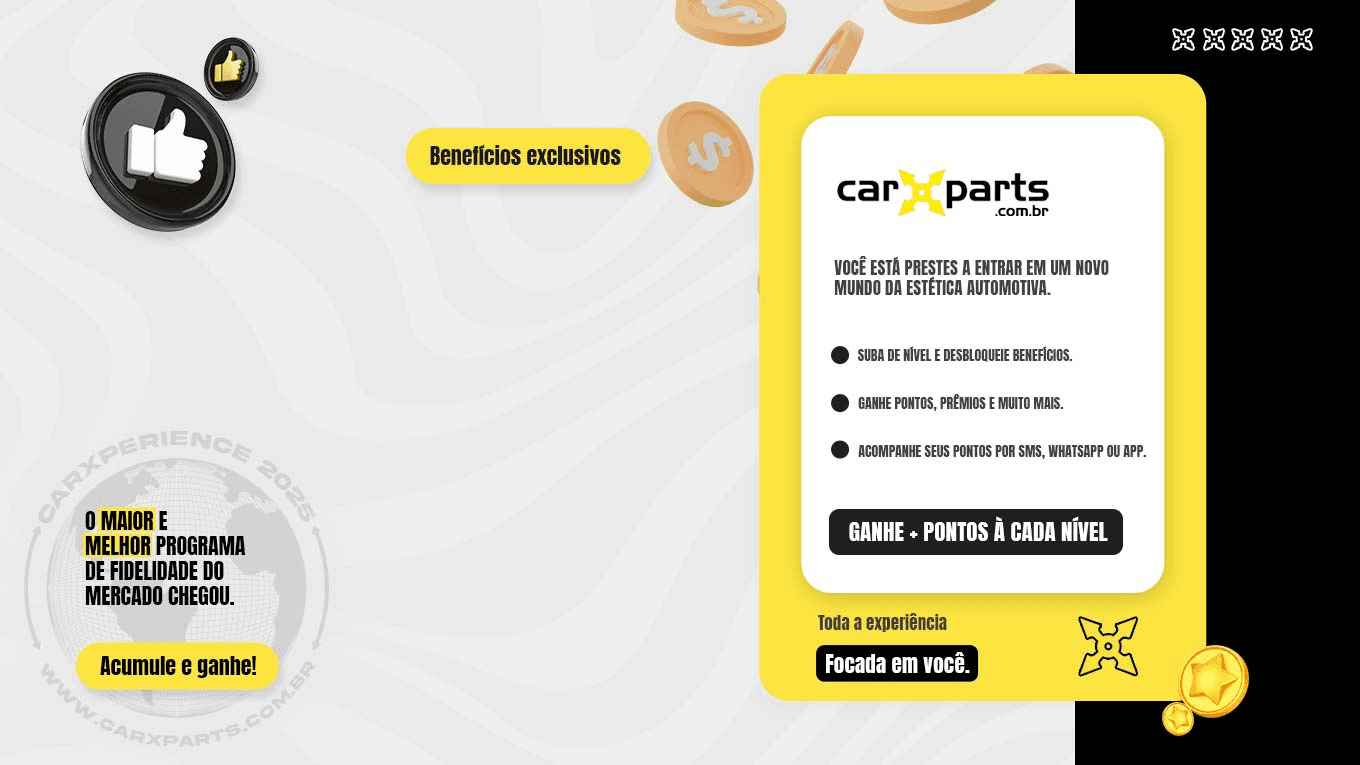 Identifique-se em suas compras e aproveite vantagens exclusivas. A cada R$5 gasto, você acumula 1 CarXPoints para trocar por prêmios.
